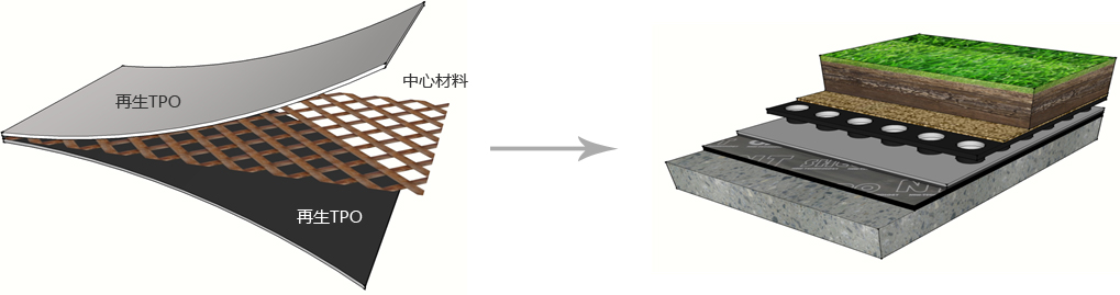 NT绿色公益通过循环资源,为确保环保性而使用了再生TPO,并非单纯混合,而是利用金属环氧树脂(Metallocene)催化剂的聚合反应制造,呈现优秀物性,利用再生后维持大部分原有性能的Reactor TPO绿色防水板,其物理、化学性能(抗张性,耐久性,韧性)都很优秀。