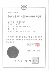 | 기술혁신형 중소기업(INNO-BIZ) 확인서 |
