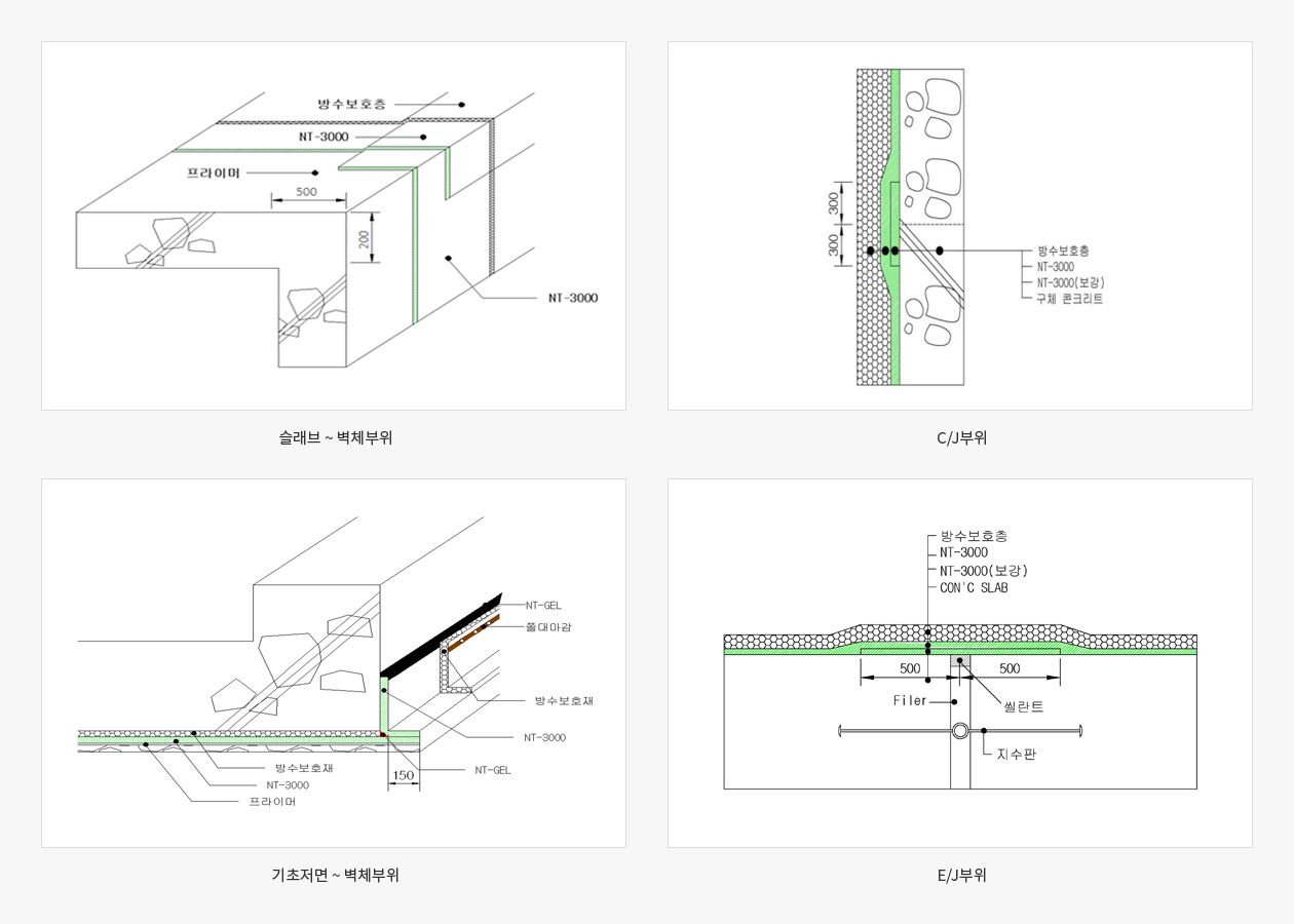 인장강도와 내열성, 내한성 등이 우수한 개량 아스팔트 방수시트재와 점착 유연형 고무 아스팔트 도막재를 합지 시킨 고점착형 합성고무계 복합시트재로 별도 프라이머 및 열기구 사용 없이 시공이 가능한 환경친화적인 복합방수공법